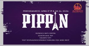 Alfresco Productions is excited to hold auditions for Pippin, a high-energy story of a man’s quest for greatness. While the revival was circus-themed, this production is going to be set against a modern day rock concert (think more Rock of Ages than Barnum), focusing on today’ s obsession with influence and fame.